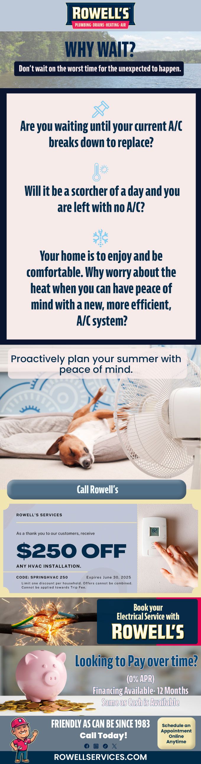 "Friendly As Can Be Since 1983!" When you need help with your plumbing, drains, heating, cooling or electrical in Derry, you can always rely on Rowell's Services! Call us now or book online!